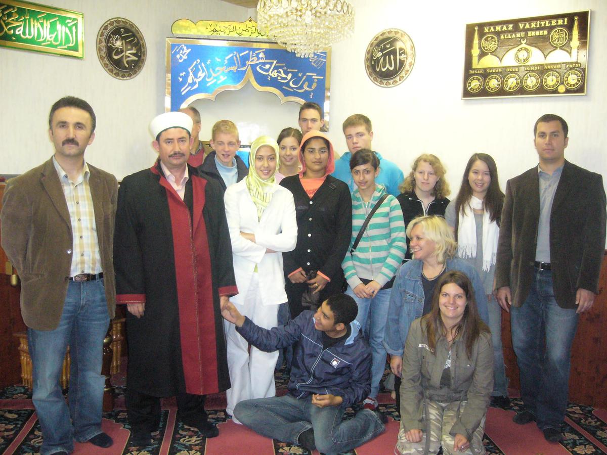 Um 8:00Uhr haben wir uns in mit unserer Gruppe getroffen. Dort haben wir uns Gedanken über unsere Erwartungen bzw unsere Vorstellungen gemacht. Um 9:00Uhr sind wir in die Moschee gegangen. Als erstes haben wir unsere Schuhe ausgezogen, weil die Moschee Allahs Haus ist und man es rein betreten soll. Danach sind wir in den Gebetsraum gegangen und der Imam hat uns erklärt, wie man betet. Des weiteren haben wir das Gebet teilweise nachgestellt. Der Imam hat auf arabisch sein Gebet gehalten. Nach dem Gebet sind wir in einen anderen Raum der Moschee gegangen. Da hat Herr Yazici uns seinen kurzen Vortrag über die Gewalt von muslimische Jugendliche gehalten. Dort ist uns klar geworden das viele Menschen unbegründete Vorurteile haben. Später haben wir unsere Fragen an den Imam gestellt und haben über die Sitten und Gebräuche mehr erfahren.